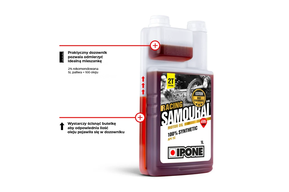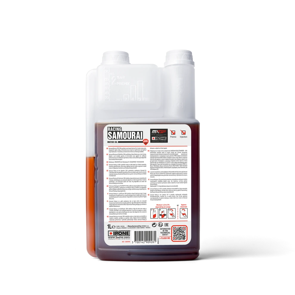 Ipone Samourai Racing 2T to olej do mieszanki ze 100% syntetyczną bazą olejową. Wysokiej jakości dodatki sprawiają, że to jeden z najlepszych olejów do paliwa i najczęściej wybierany olej do 2T.