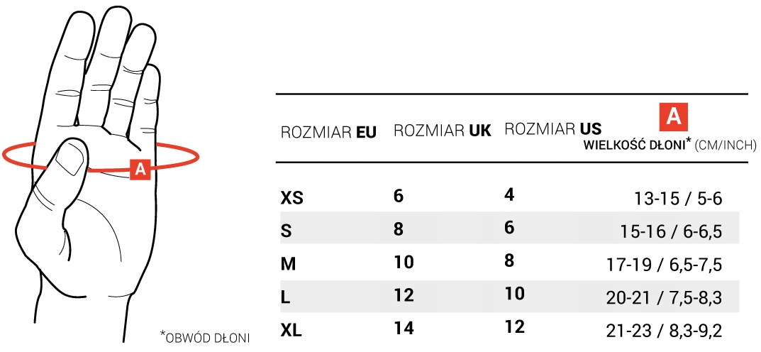 Spodnia część kciuka i powierzchnia tuż pod palcami wzmocnione podwójną warstwą skóry