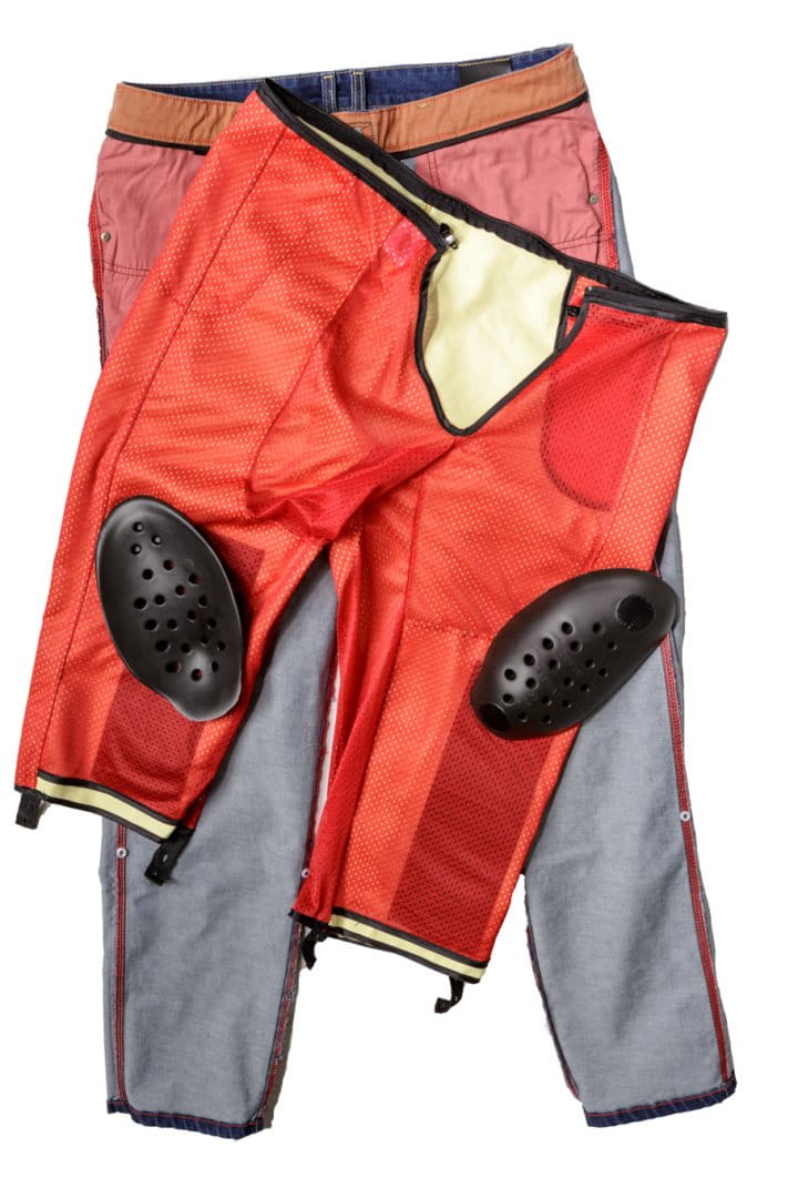 • wyposażone w wypinane szorty wzmocnione tkaniną Kevlar® DuPont™ w miejscach najbardziej narażonych na przetarcia