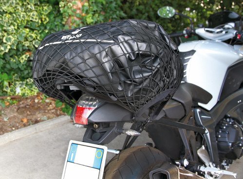 Pewnie utrzymuje kask lub transportowane przedmioty na zbiorniku lub tylnej kanapie.