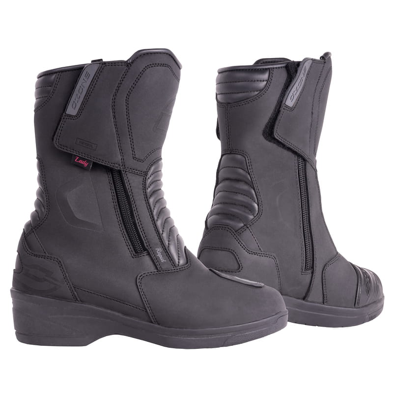 Skórzane buty motocyklowe Rapid High są zaprojektowane z myślą o kobietach. Dzięki podwyższonemu obcasowi i wewnętrznemu koturnowi nie będziesz musiała obniżać motocykla, a twoja sylwetka optycznie się wydłuży. Rapid High mają też membranę HIPORA i wzmocnienie pod dźwignię zmiany biegów.