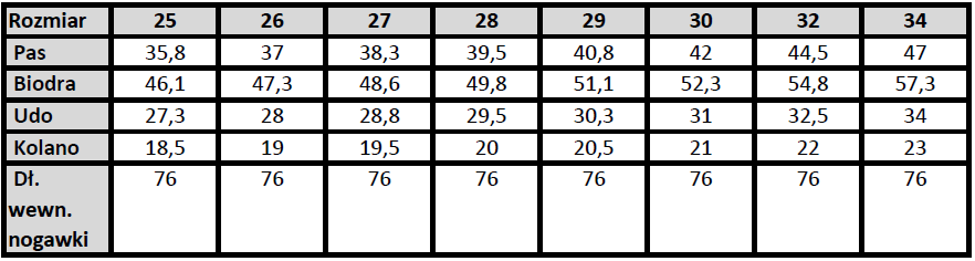 Rozmiary: 25, 26, 27, 28, 29, 30, 32, 34, 36