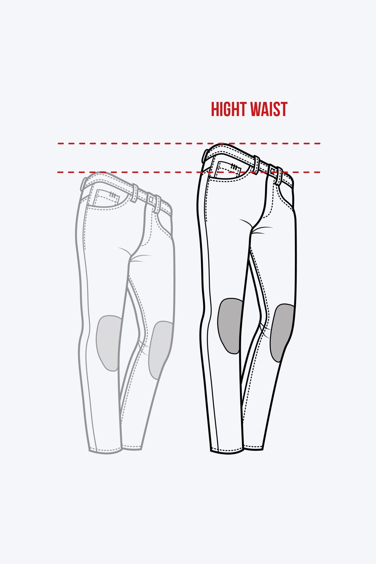 Dopasowany krój, wysoki stan, brak zewnętrznych szwów