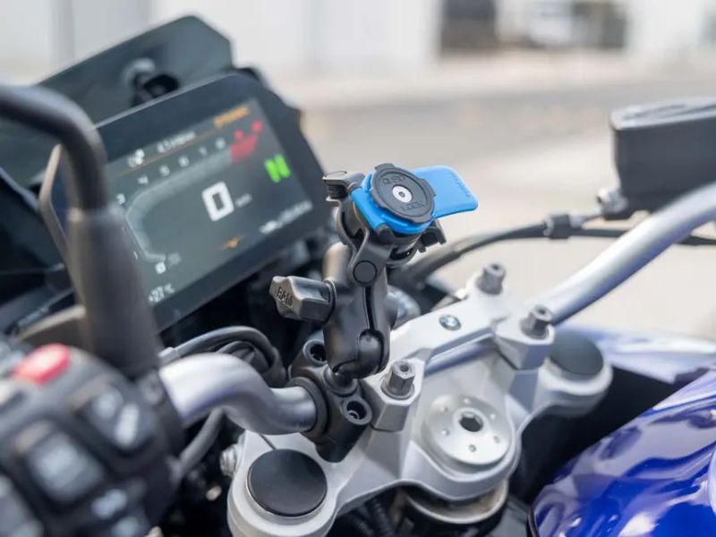 Poziom wibracji niektórych motocykli może wpływać na stabilizację obrazu w nowych smartfonach. Opcjonalny tłumik drgań Quad Lock umożliwia pewny montaż smartfona na dowolnym motocyklu.