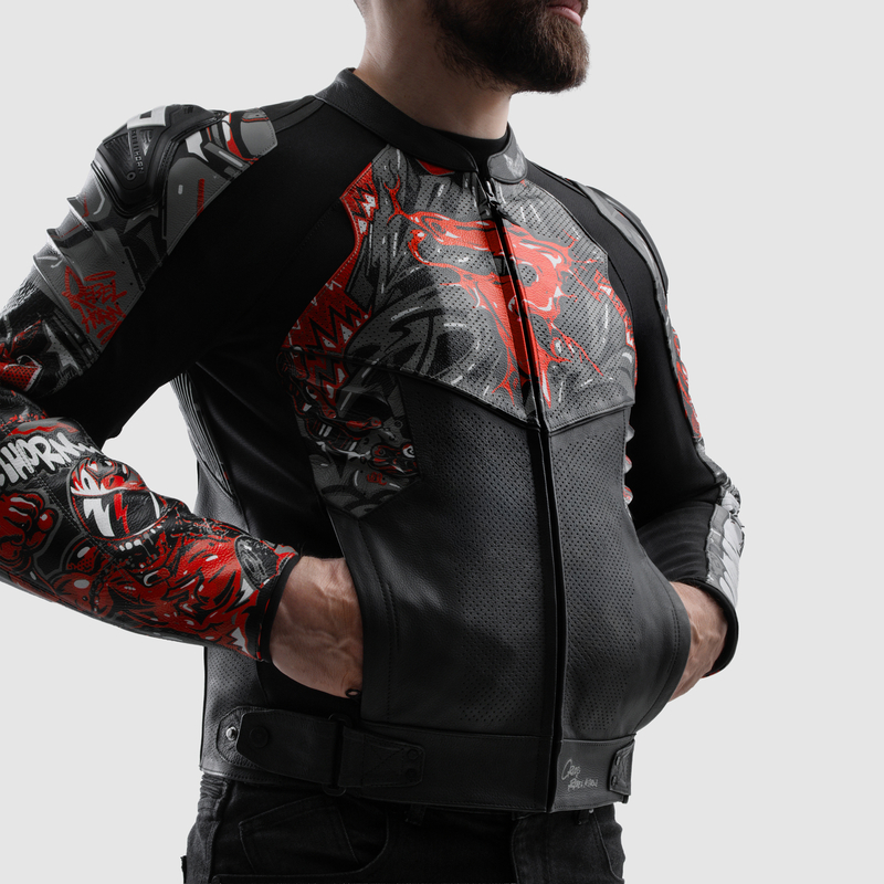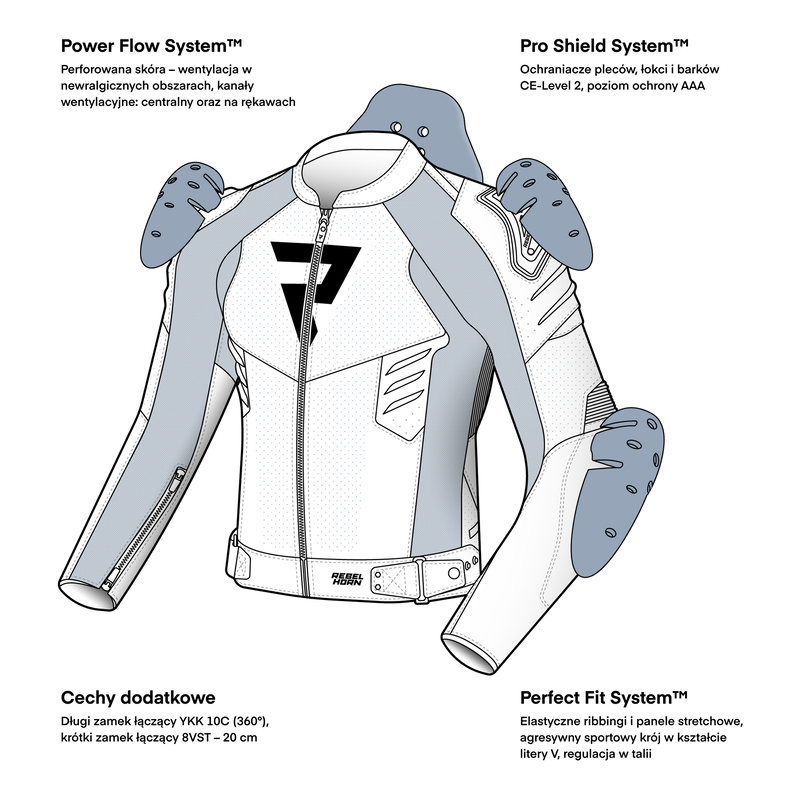 Rebelhorn Vandal 2 – Miejsko-sportowa kurtka skórzana o agresywnym charakterze i najwyższym poziomie ochrony AAA. Rebelhorn Vandal 2 łączy wytrzymałą skórę, kanały wentylacyjne i elastyczne wstawki, by zapewnić bezpieczeństwo i komfort podczas dynamicznej jazdy. W zestawie znajduje się ocieplająca kamizelka softshellowa – idealna na chłodniejsze dni. Pełen zestaw ochraniaczy poziomu 2 oraz slidery barków czynią z niej „zbroję” gotową na miejską dżunglę. Przemyślana ergonomia, sportowy fason i nowoczesny design – to kurtka, która nie tylko chroni, ale i przyciąga spojrzenia.