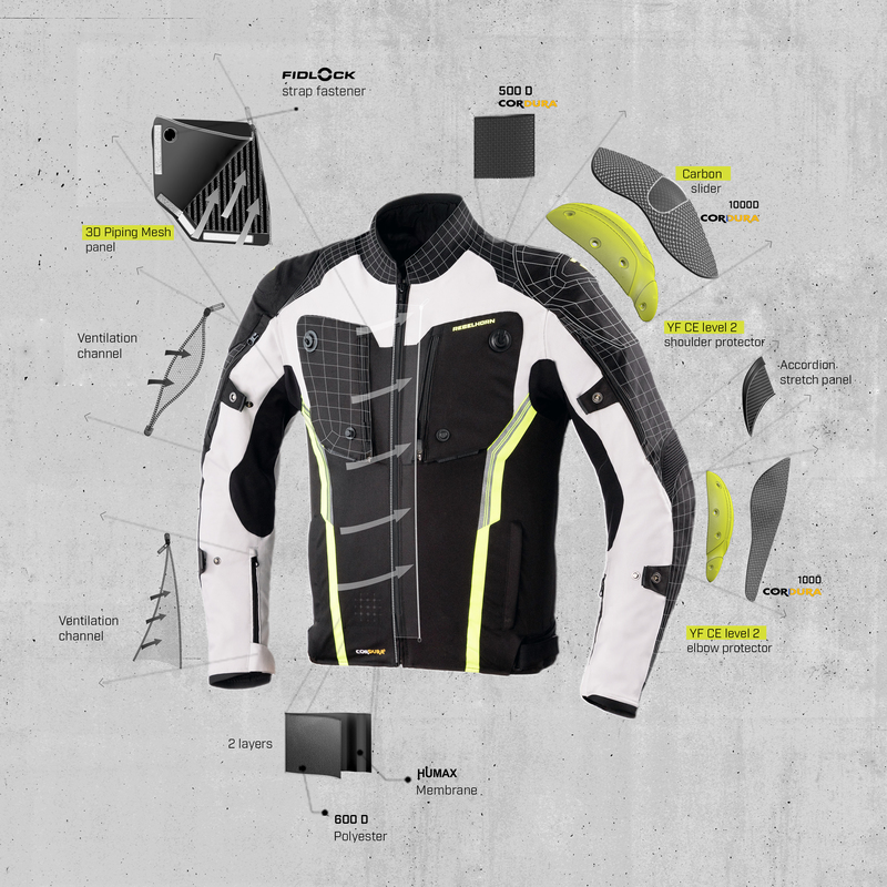 Motocyklowa Kurtka Tekstylna Rebelhorn Borg Black/Grey/Flo Yellow