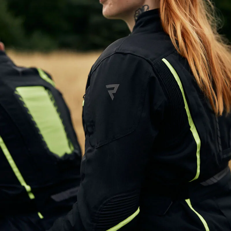 O Twoje bezpieczeństwo dbają ochraniacze łokci i barków CE-level 2, odblaskowe wstawki i duży panel fluo na plecach. Podwójne i potrójne szwy zwiększają dodatkowo wytrzymałość kurtki na przetarcia.