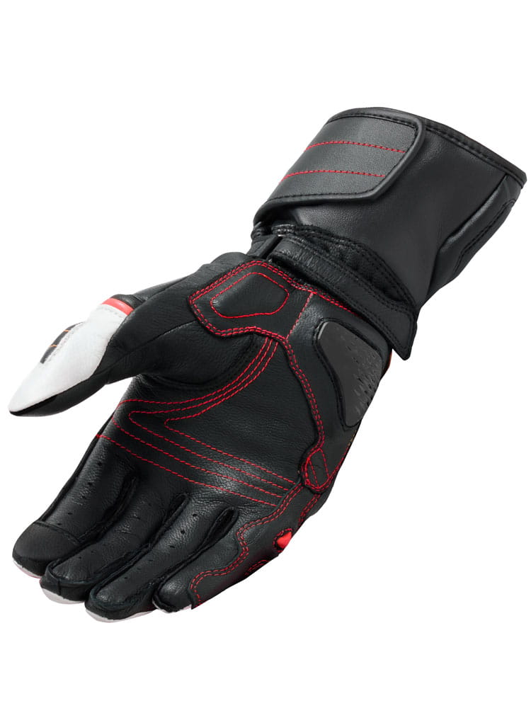 Rękawice motocyklowe RSR 4 to ulepszona wersja poprzedniego modelu rękawic od marki REV’IT! Rękawice zapewniają maksimum wygody i wentylacji dzięki skórzanej konstrukcji wykonanej z miękkiej i odpornej na ścieranie koziej skóry. Na palcach znajduje się wentylacja dzięki której zapewniony jest dopływ powietrza. Mankiet rękawicy wykonany jest z tkaniny PU, a karbonowy ochraniacz kostek oraz ochraniacze TPU na małym palcu i dłoni zapewniają bezpieczeństwo przed uderzeniami. Dodatkowo dłoń osłonięta jest specjalną pianką Temperfoam® pochłaniającą energię uderzenia. Za sprawą Connect finger trip zastosowanym w rękawicach bez problemu możemy obsługiwać urządzenia z ekranem dotykowym.