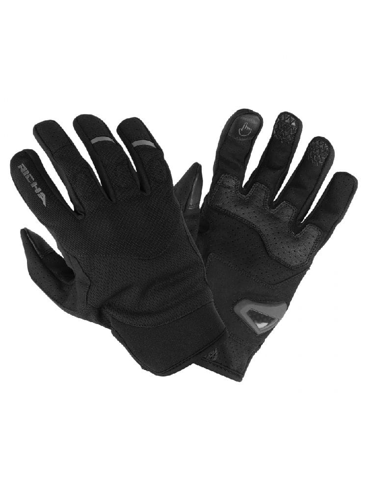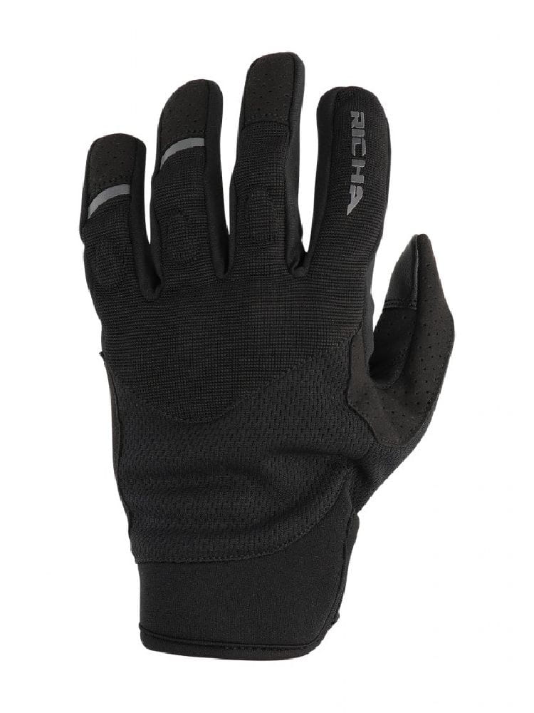 Tekstylne rękawice motocyklowe firmy Richa. Krótki mankiet z mocnym zapięciem na rzep dla lepszego dopasowania. Ochraniacze z pianki na palcach i wewnętrznej stronie dłoni oraz ślizgacz nadgarstkowy.