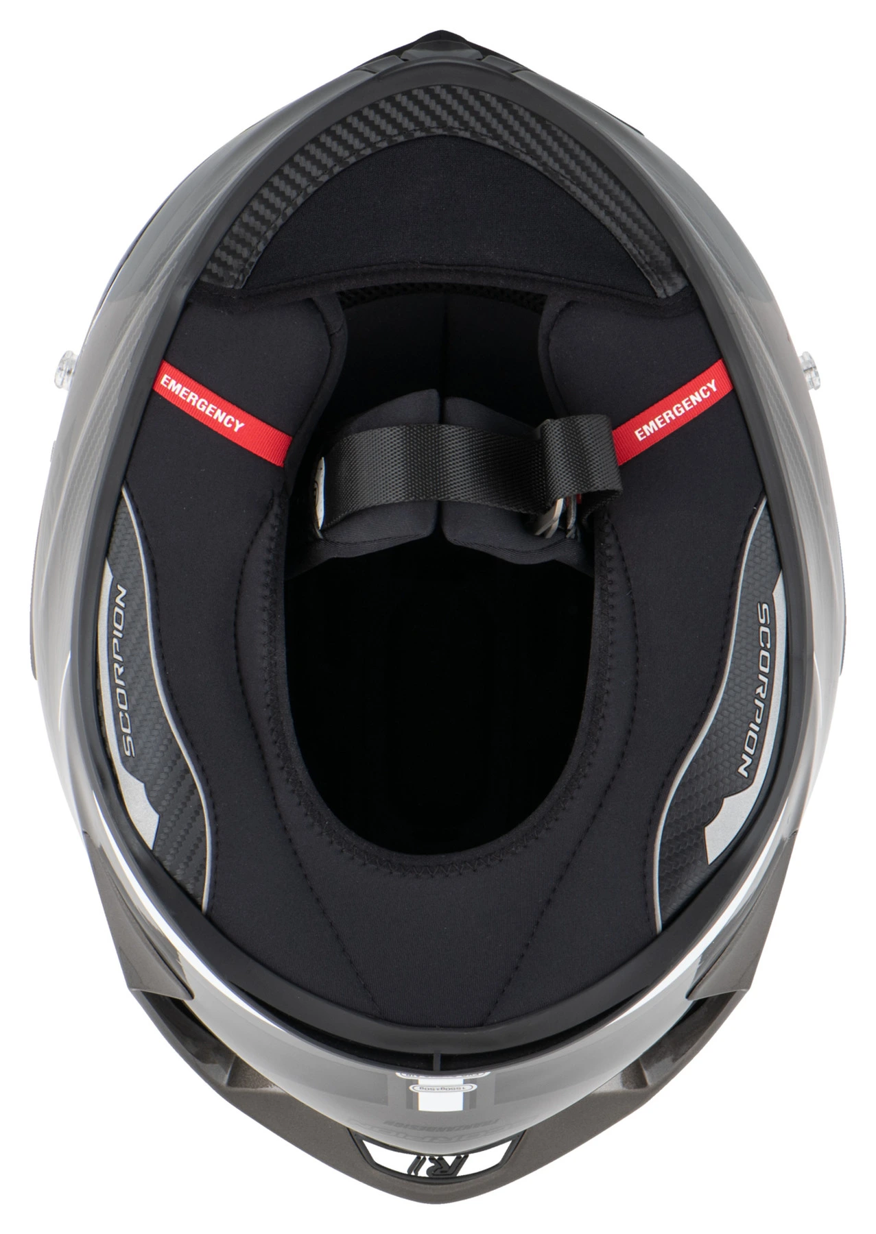 - Awaryjne zwolnienie poduszek policzkowych ułatwiające zdjęcie kasku w razie upadku