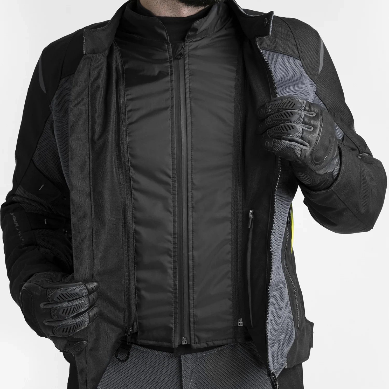 Wodoodporna membrana NextDry™ skutecznie chroni przed opadami deszczu, gwarantując suchą skórę nawet podczas najbardziej nieprzychylnych warunków atmosferycznych. Kurtka jest również odporna na wiatr, a zastosowana podpinka ocieplająca sprzyja utrzymaniu ciepła podczas jazdy w zimniejszych temperaturach. Po wypięciu podpinek, dzięki panelom meshowym utrzymasz komfort termiczny nawet w najgorętsze dni. Wykonane z siateczki, rozmieszczone na klatce piersiowej, przedramionach i na plecach panele stanowią kluczowy element, który zapewnia odpowiednią cyrkulację powietrza.