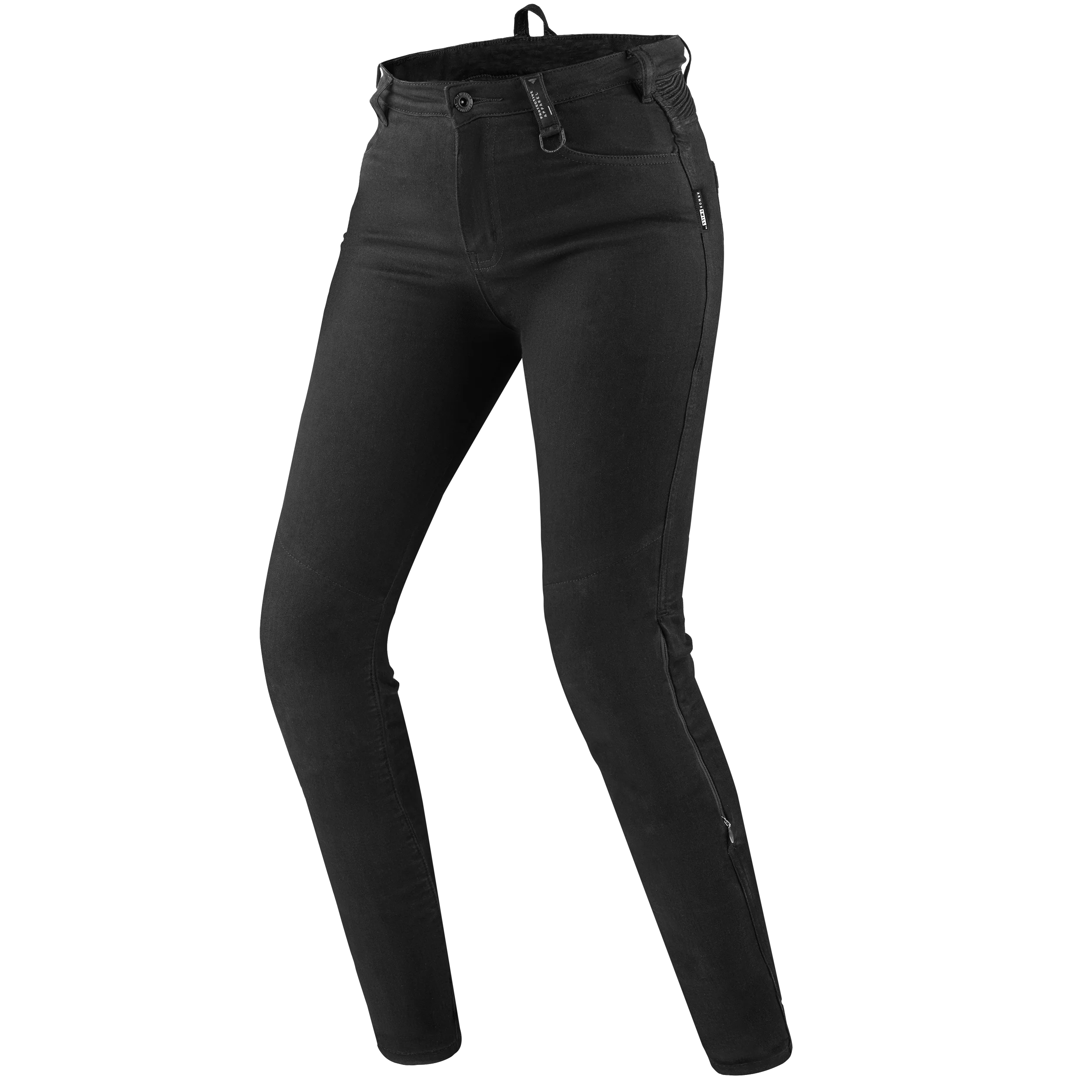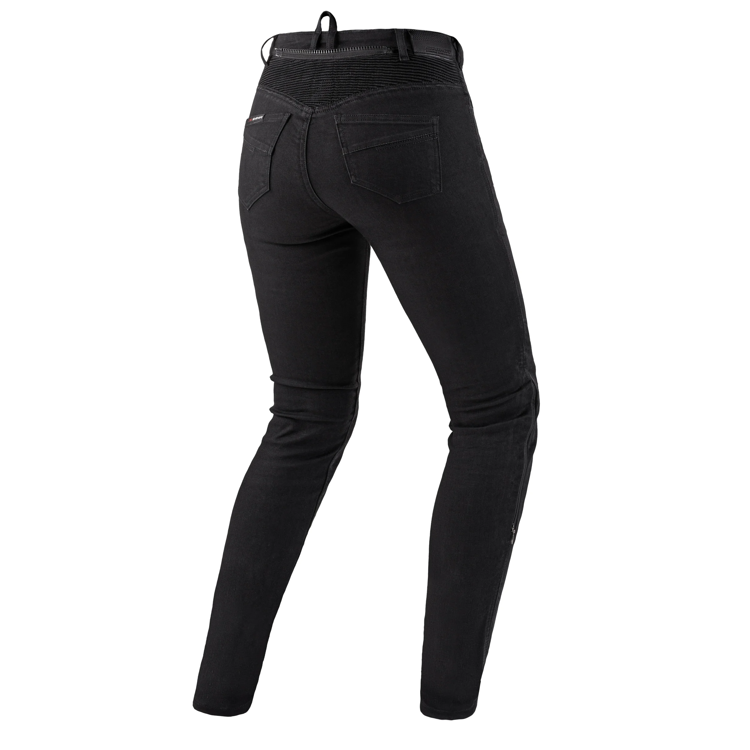 Model FLEXX to jeansy motocyklowe stworzone z myślą o kobiecych kształtach! Ich konstrukcja w połączeniu z wysoką talią oraz wąską nogawką gwarantuje doskonałe dopasowanie i podkreślenie kobiecej sylwetki. O Twój komfort podczas jazdy zadbają panele harmonijkowe umiejscowione z tyłu w obszarze talii oraz wykonanie z wyjątkowo elastycznego materiału. Połączenie bawełny, poliestru, wiskozy i elastanu, zapewnia bardzo dobre dopasowanie i podnosi komfort użytkowania. Jeansy FLEXX to także solidna ochrona. Wyposażone są w przewiewne certyfikowane protektory kolan SafeTech™ poziomu 1. Kieszenie na protektory posiadają 3-stopniową regulację wysokości, znajdują się na zewnątrz i są zamykane zamkiem. W ten sposób swoje jeansy motocyklowe szybko przekształcisz w spodnie codziennego użytku. W modelu FLEXX znajdziesz detale, za które pokochasz dużą funkcjonalność spodni – są one wyposażone w kieszenie przednie i tylne oraz zawieszkę do kluczy. Krótki zamek łączący i pętelka pozwolą w mgnieniu oka sparować jeansy z Twoją ulubioną kurtką motocyklową marki SHIMA. FLEXX dostępne w klasycznej czerni będą doskonałym uzupełnieniem szafy motocyklowej każdej kobiety.