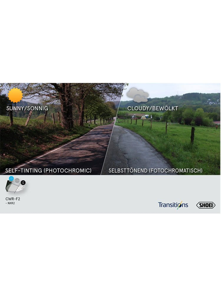 Wizjer fotochromatyczny ściemnia się i rozjaśnia w zależności od panujących warunków oświetleniowych.