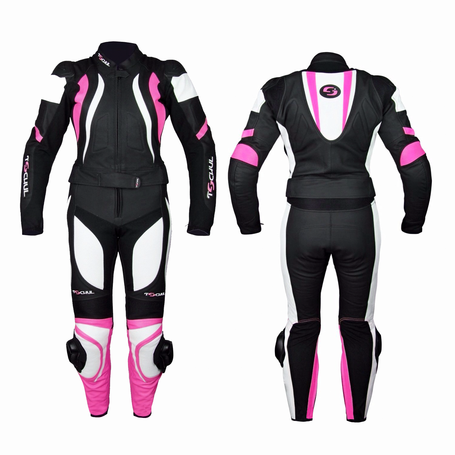 Tschul 546 black/white/pink - Damskie spodnie skórzane